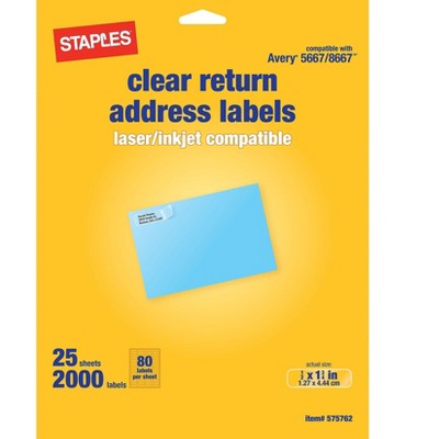Avery Easy Peel Laser Address Labels, 1" x 2 5/8", White ... - Staples.com Get Avery Easy Peel Laser Address Labels, 1" x 2 5/8", White, 3000 Labels Per Pack (5160) fast and with free shipping on qualifying orders at Staples. Same-Day Advertising Labels | Staples Express pickup is available at an additional cost and guarantees your order will be ready for pickup in three hours or less. Orders placed after cut off times (2 pm for standard or three hours before closing for express) will be ready the next day. less
