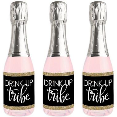 Big Dot of Happiness "Bride Tribe" - Mini Wine and Champagne Bottle Label Stickers - Bridal Shower or Bachelorette Party Favor Gift - Set of 16