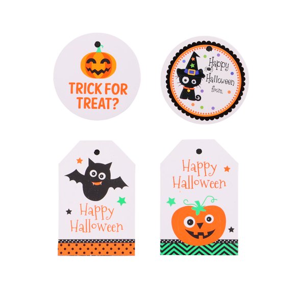 50Sets Halloween Gift Tags Pumpkin Cat Ghost Candy Bag Packaging Labels Hang Tags Party Decoration Paper Card for Trick or Treat